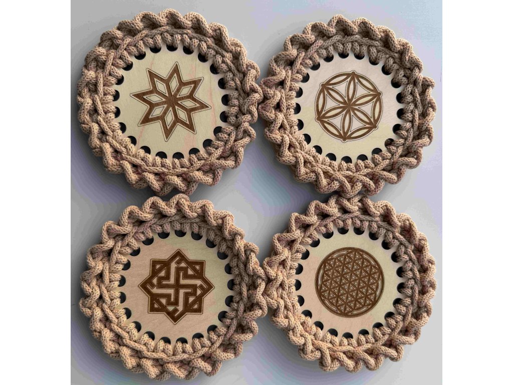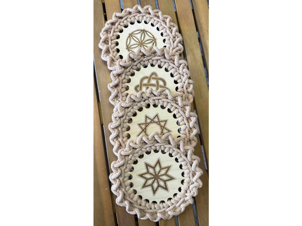 Ručně háčkované podtácky se slovanskými symboly - sada 4 ks
