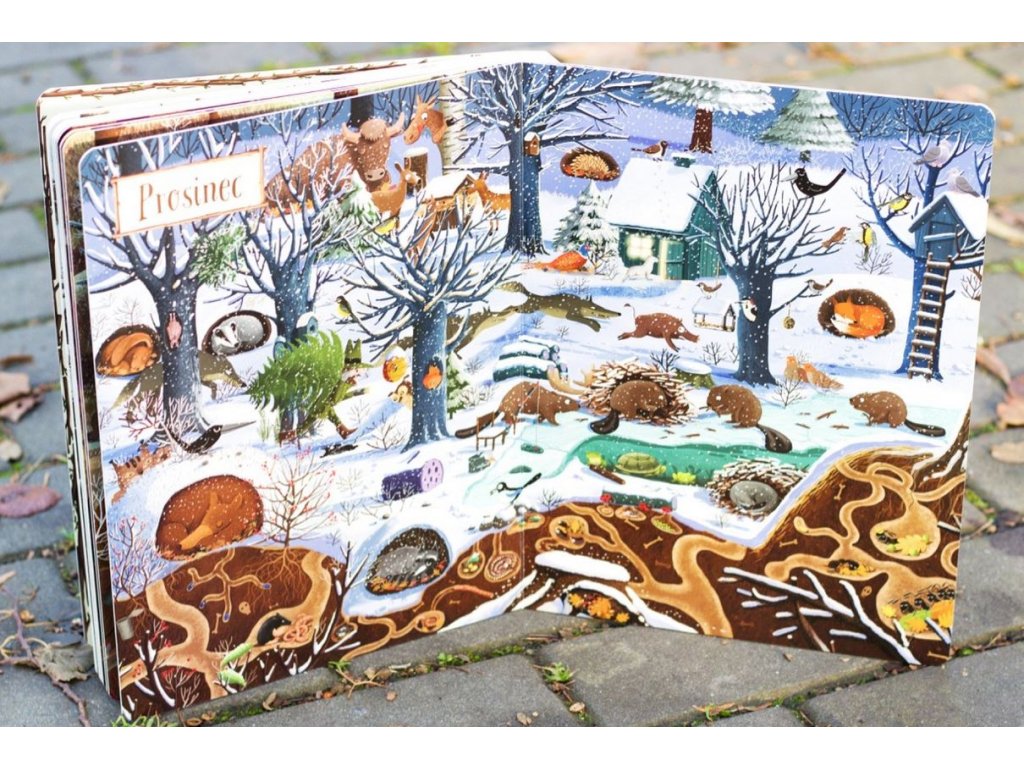 Bohatě ilustrované dvoustrany zachycují proměny jednoho místa v průběhu celého roku. Děti mohou pozorovat chování zvířat během jednotlivých ročních období, za různého počasí a v různou denní dobu.