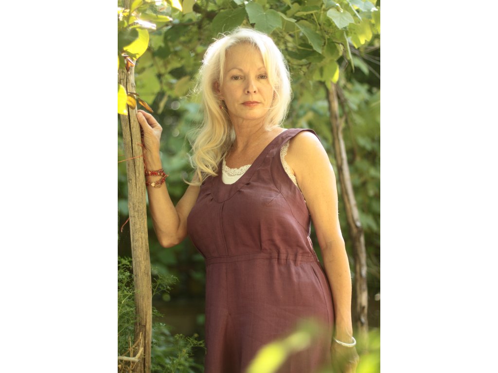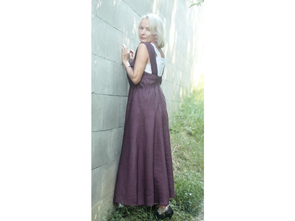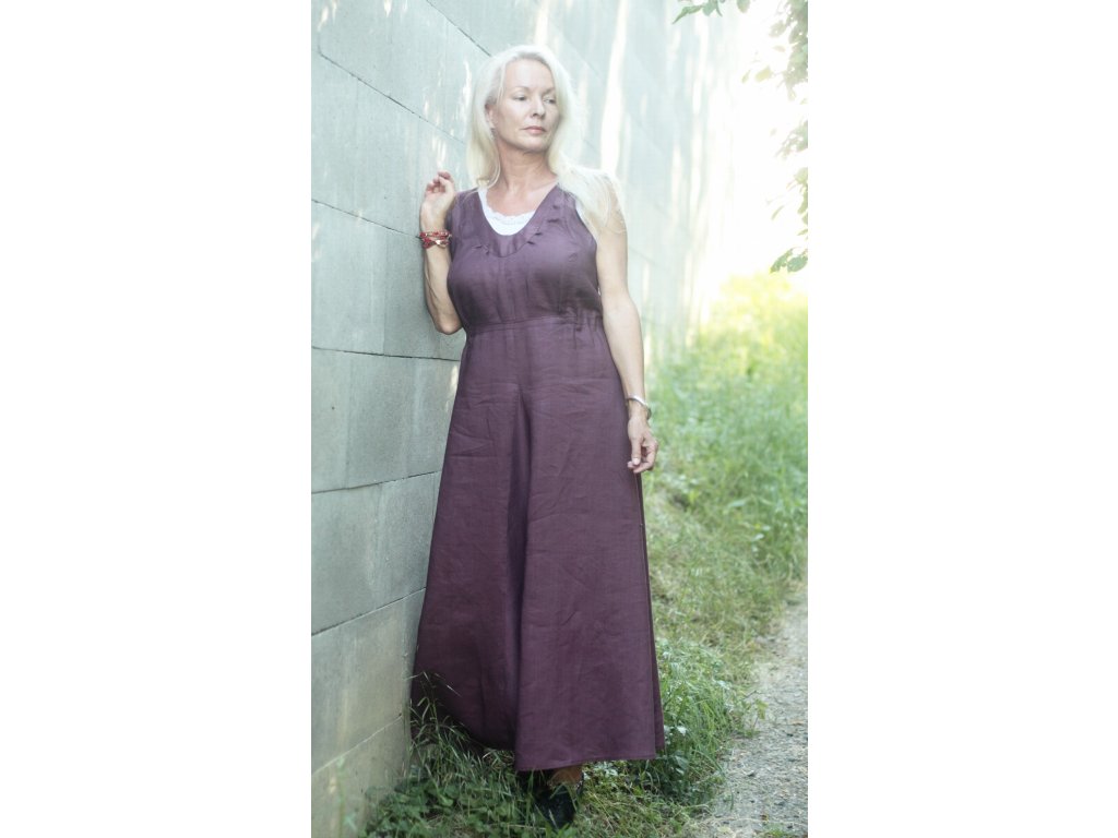 Tradiční sarafán – čistý len, tmavěfialový mírně lesklý